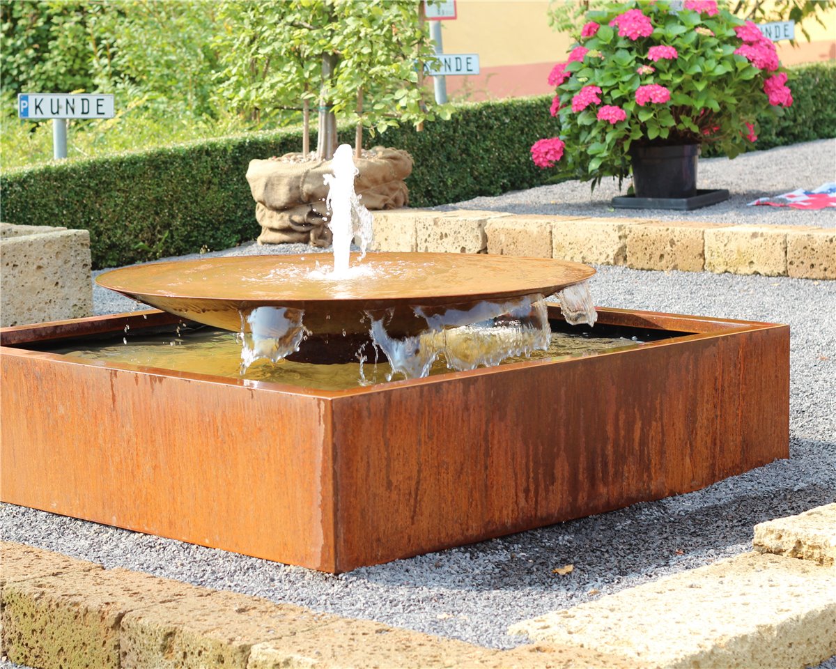 Cortenstahl Wasserschale 120 mit Fontäne Edelrost Springbrunnen Gartenbrunnen Komplettset