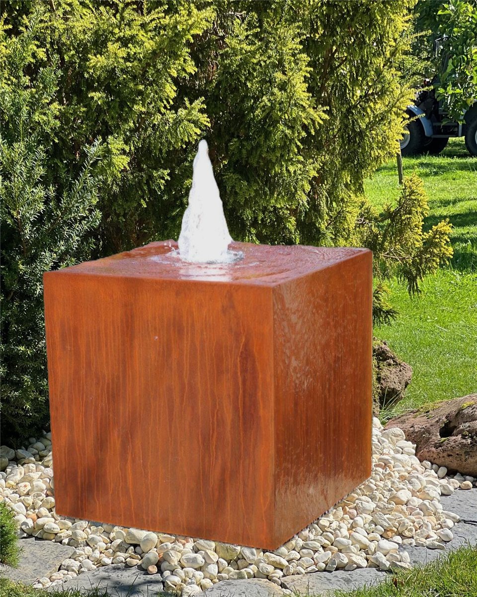 Cortenstahl Würfel 80 mit Fontäne Edelrost Gartenbrunnen Springbrunnen Komplettset