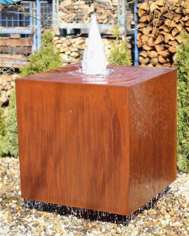 Cortenstahl Würfel 80 mit Fontäne Schwebeoptik Edelrost Gartenbrunnen Springbrunnen