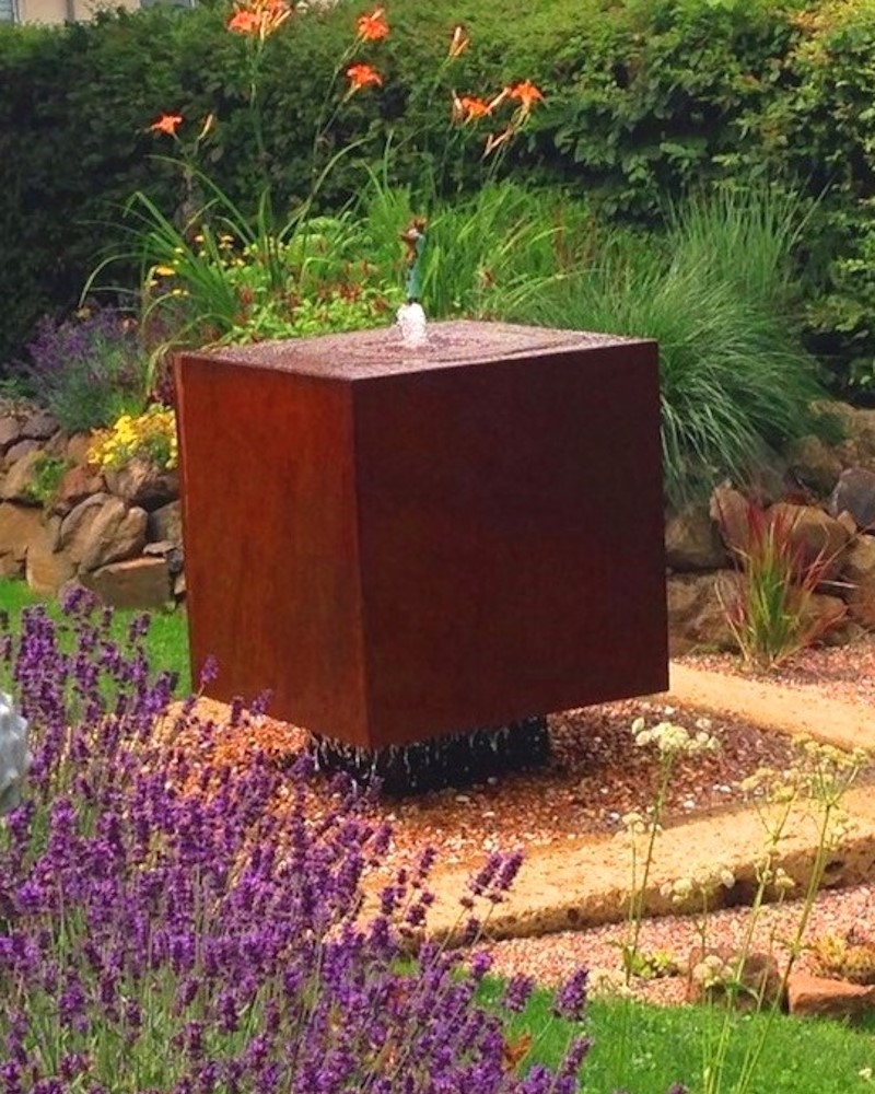 - Der moderne Metallbrunnen ist ein Deutsches Qualitätsprodukt und entsteht in hochwertiger Handwerksarbeit in den Werkstätten der Brunnenschmiede am Bayerischen Untermain. Es wird dabei ausschließlich Deutscher Cortenstahl höchster Güte in mind. 3 mm Materialstärke verarbeitet