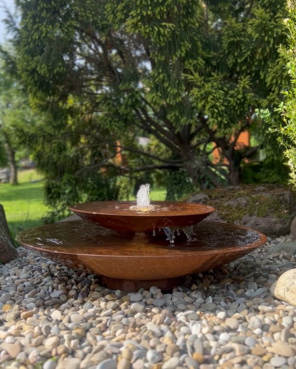 Wasserschalen Kaskade Duo Ø100cm mit Fontäne Cortenstahl Springbrunnen Komplettset