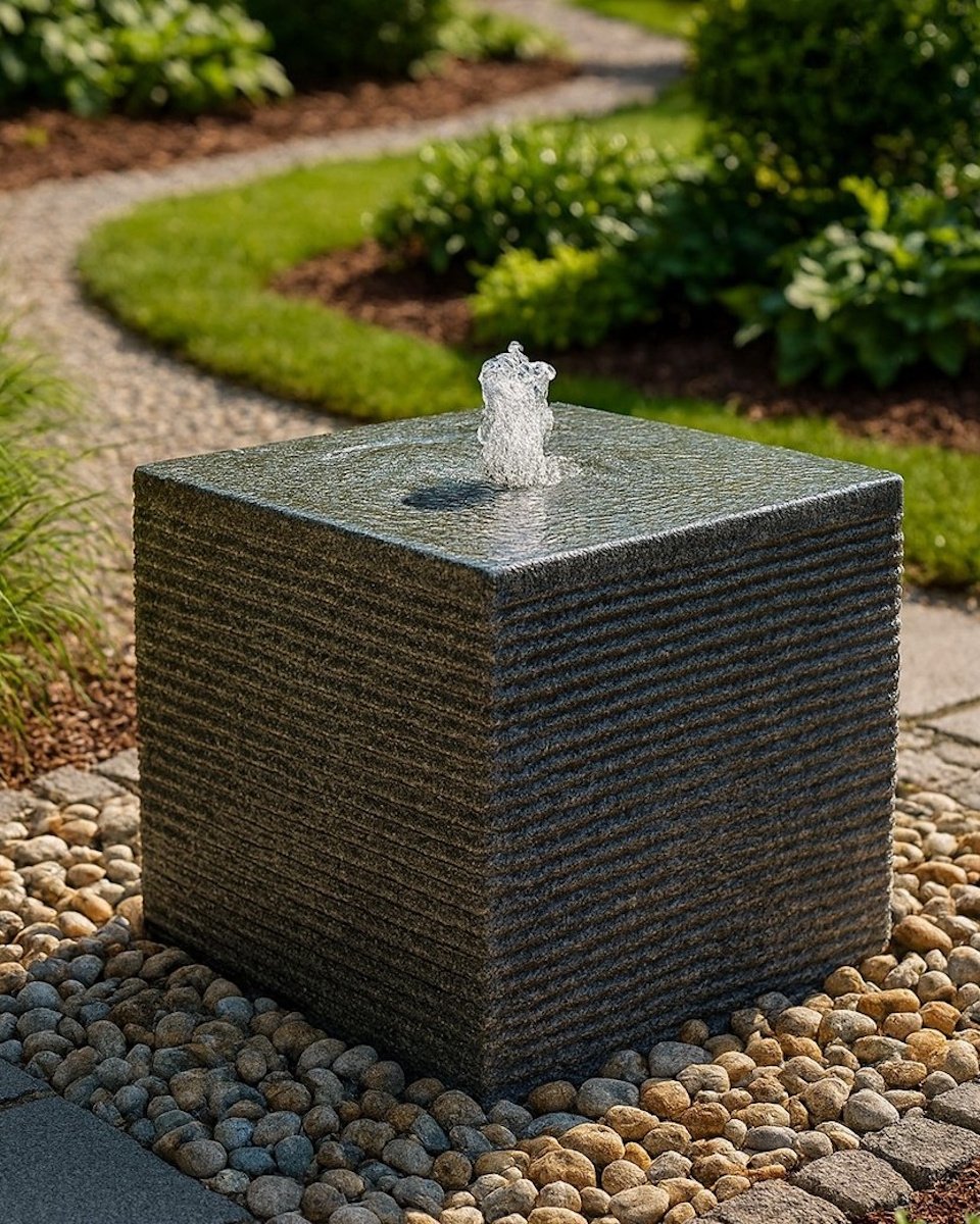 Quellstein Würfel 40cm Granit Gartenbrunnen Springbrunnen Komplettset
