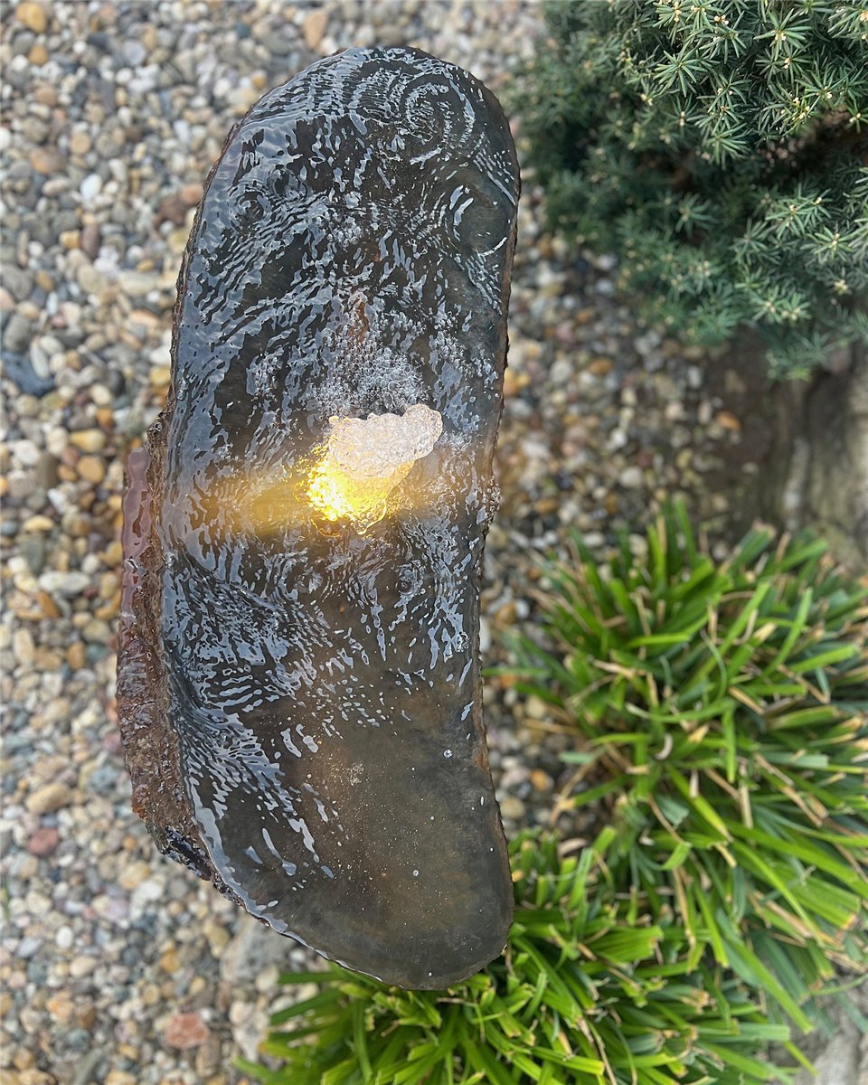 - Das Besondere: In der geschliffenen Quellschale sammelt sich das Wasser der Sprudelquelle und läuft über den Quellstein herab