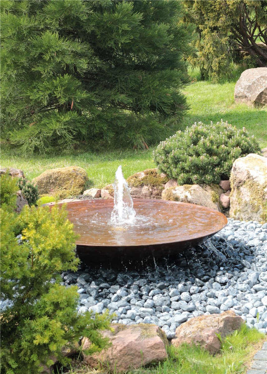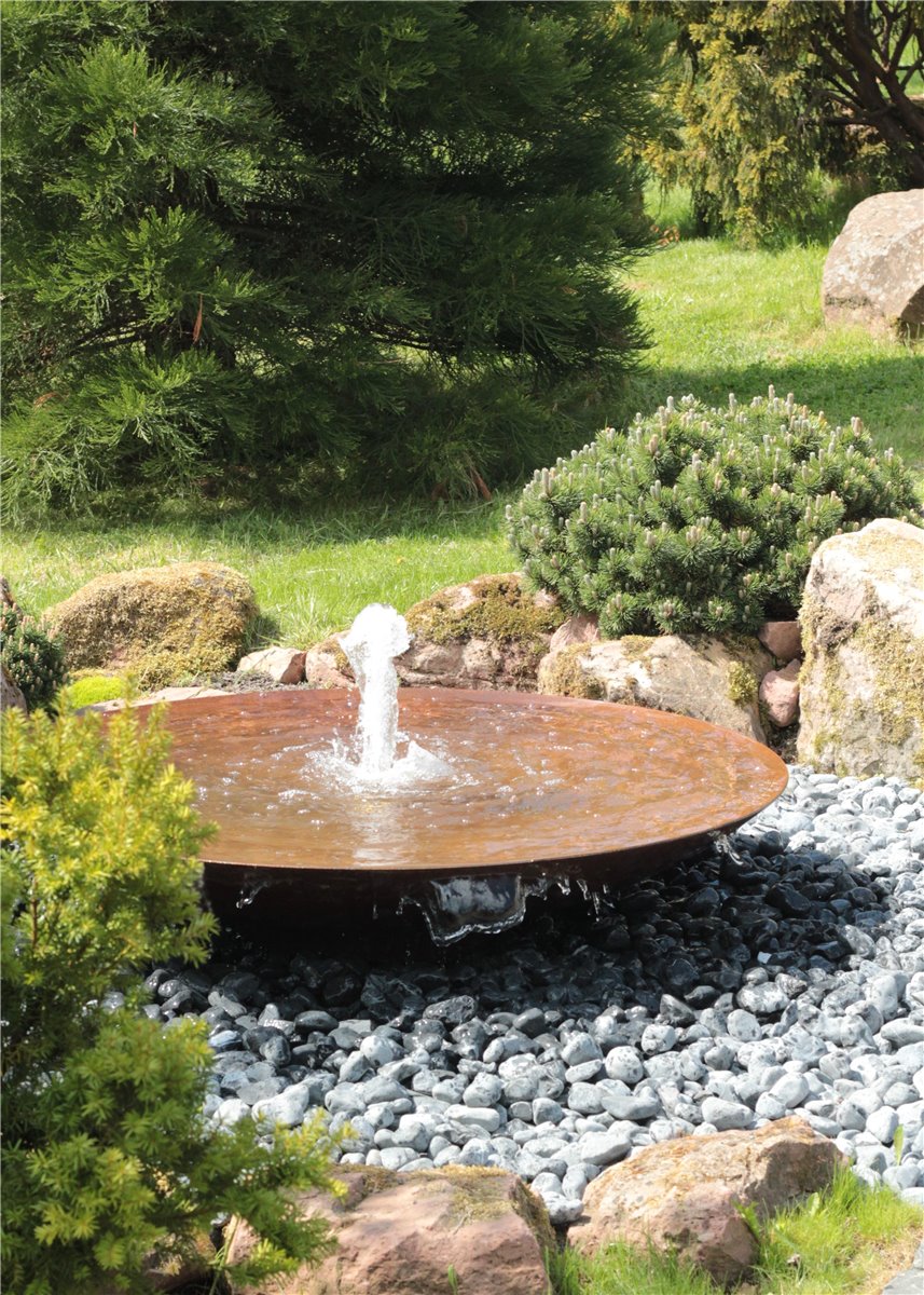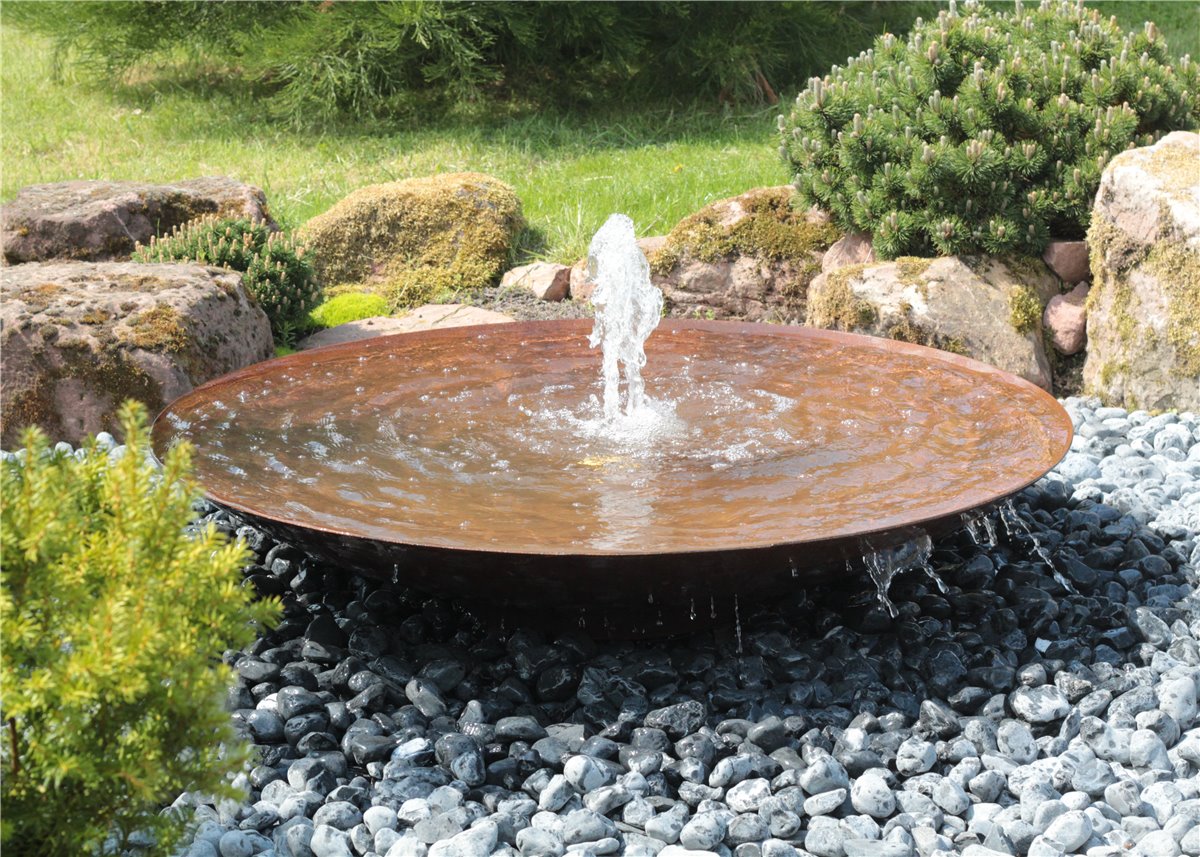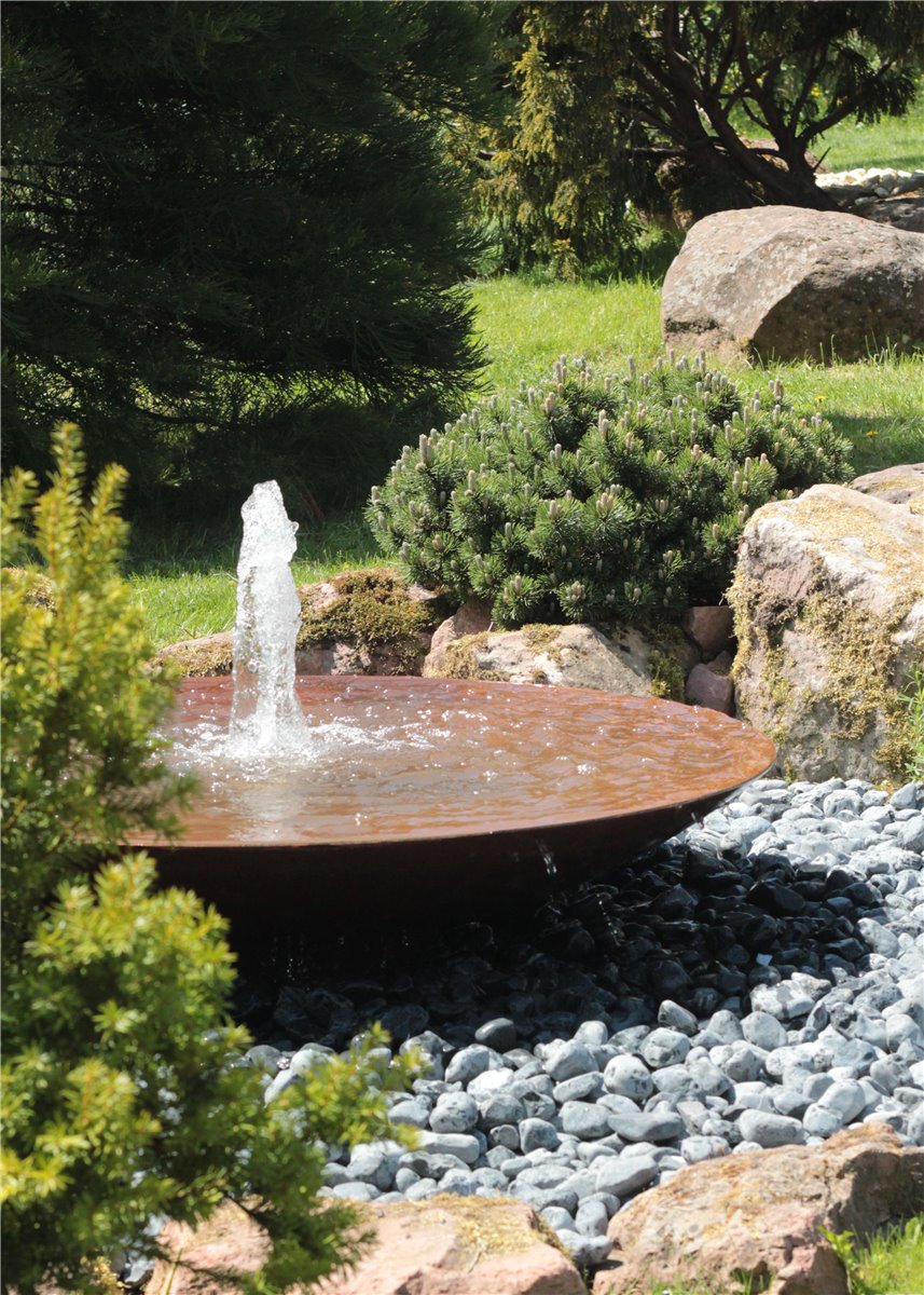 Cortenstahl Wasserschale 150 mit Fontäne Edelrost Springbrunnen Komplettset