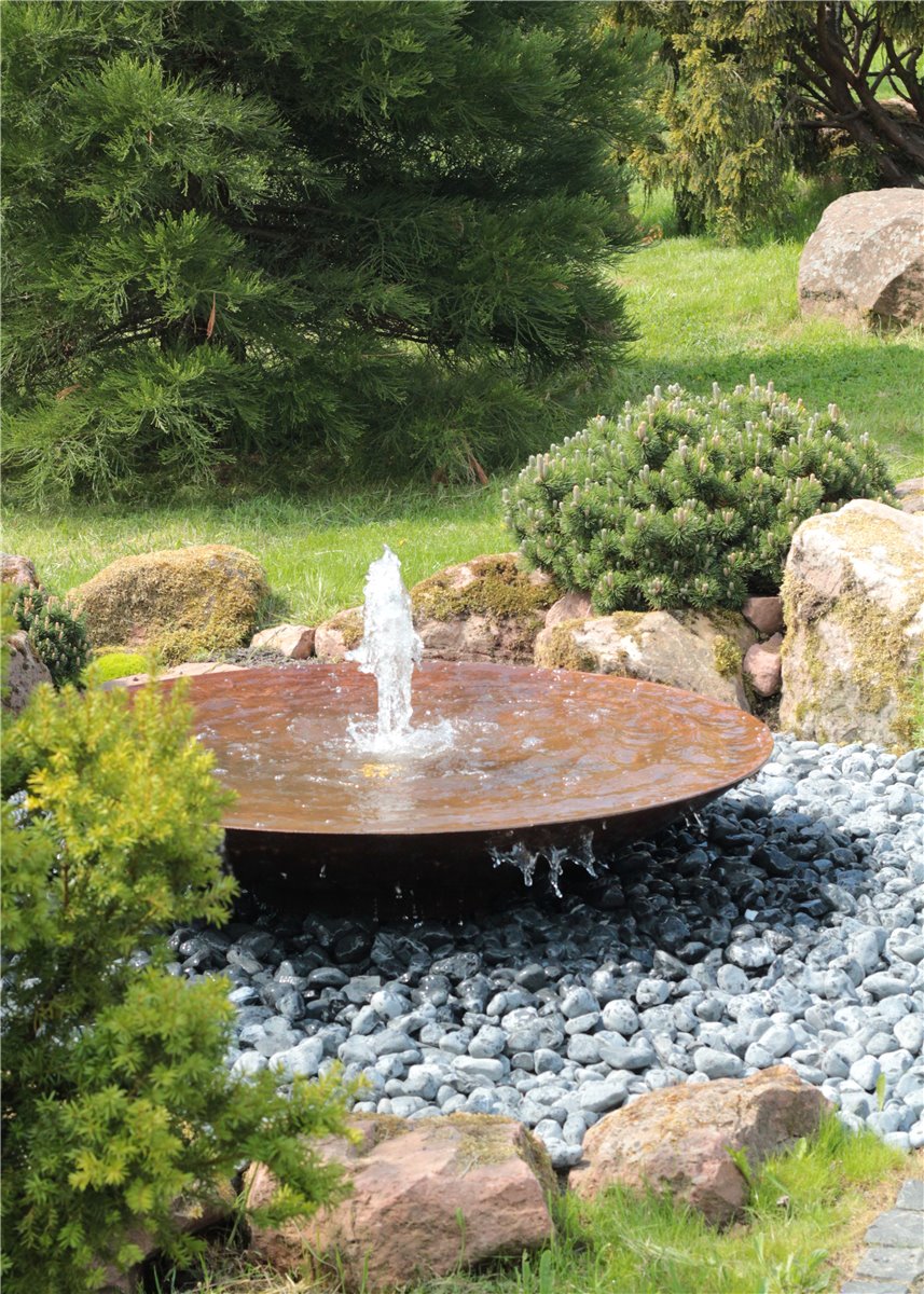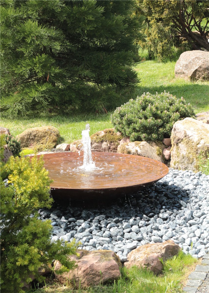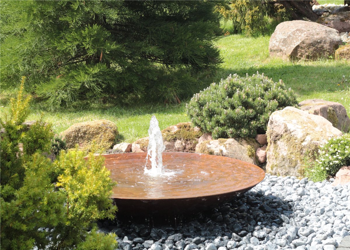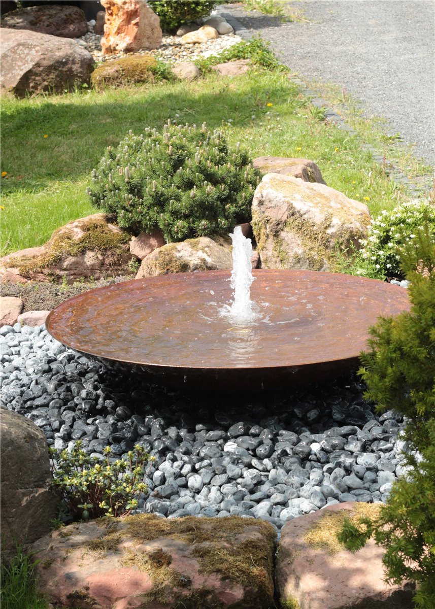 Cortenstahl Wasserschale 150 mit Fontäne Edelrost Springbrunnen Komplettset