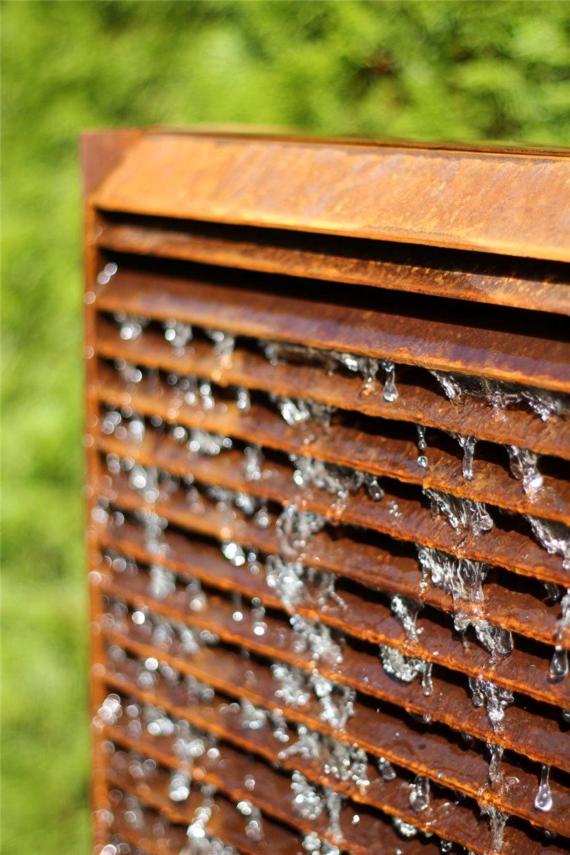 - Dieser Cortenstahlbrunnen wurde dem angenehmen Plätschern eines Sommerregens nachempfunden