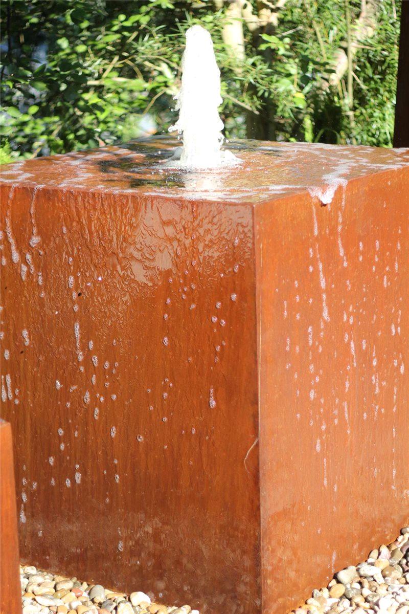Cortenstahl Würfel 100 Gigant mit Fontäne Edelrost Gartenbrunnen Springbrunnen