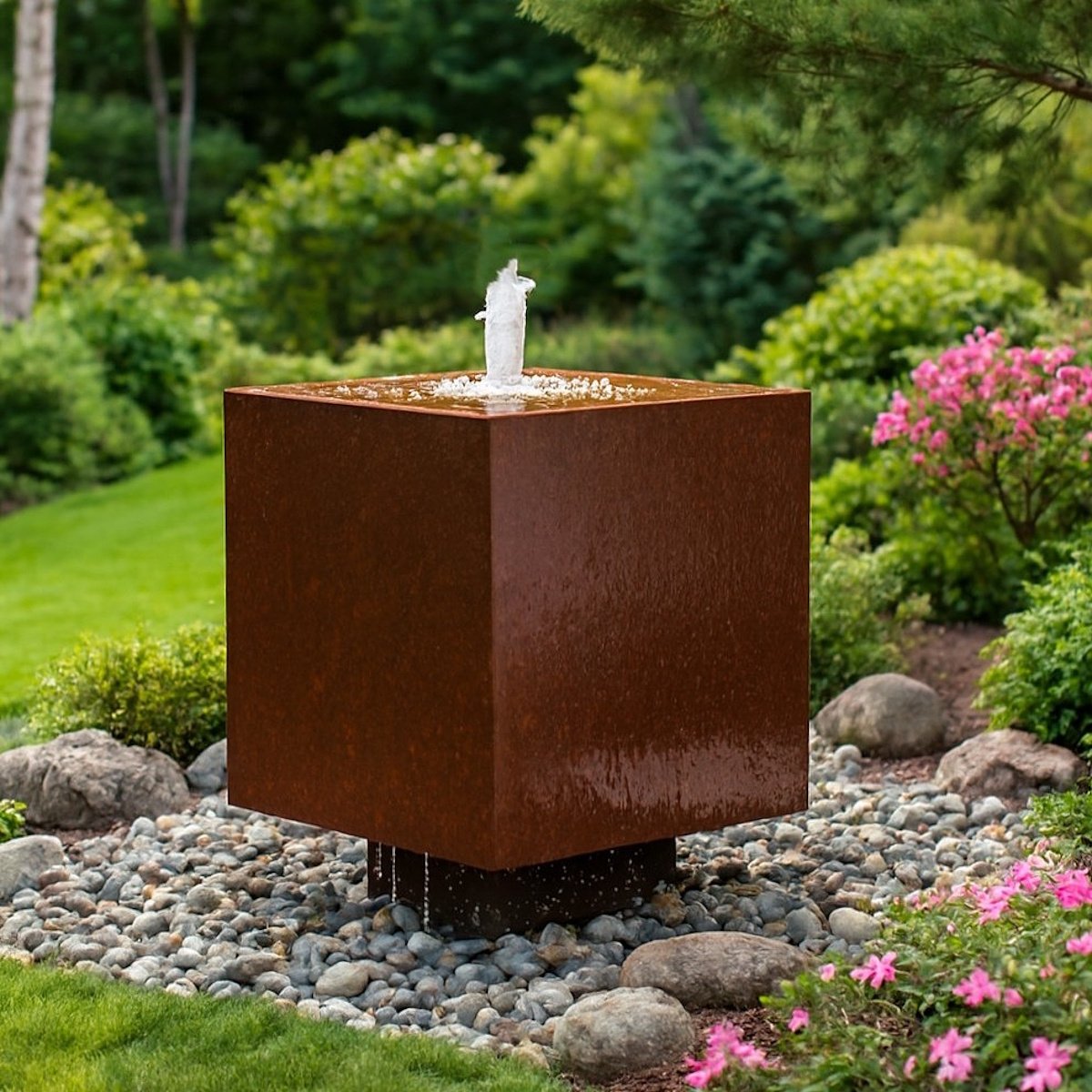 Cortenstahl Würfel 50cm Schwebeoptik Edelrost Gartenbrunnen Springbrunnen Komplettset
