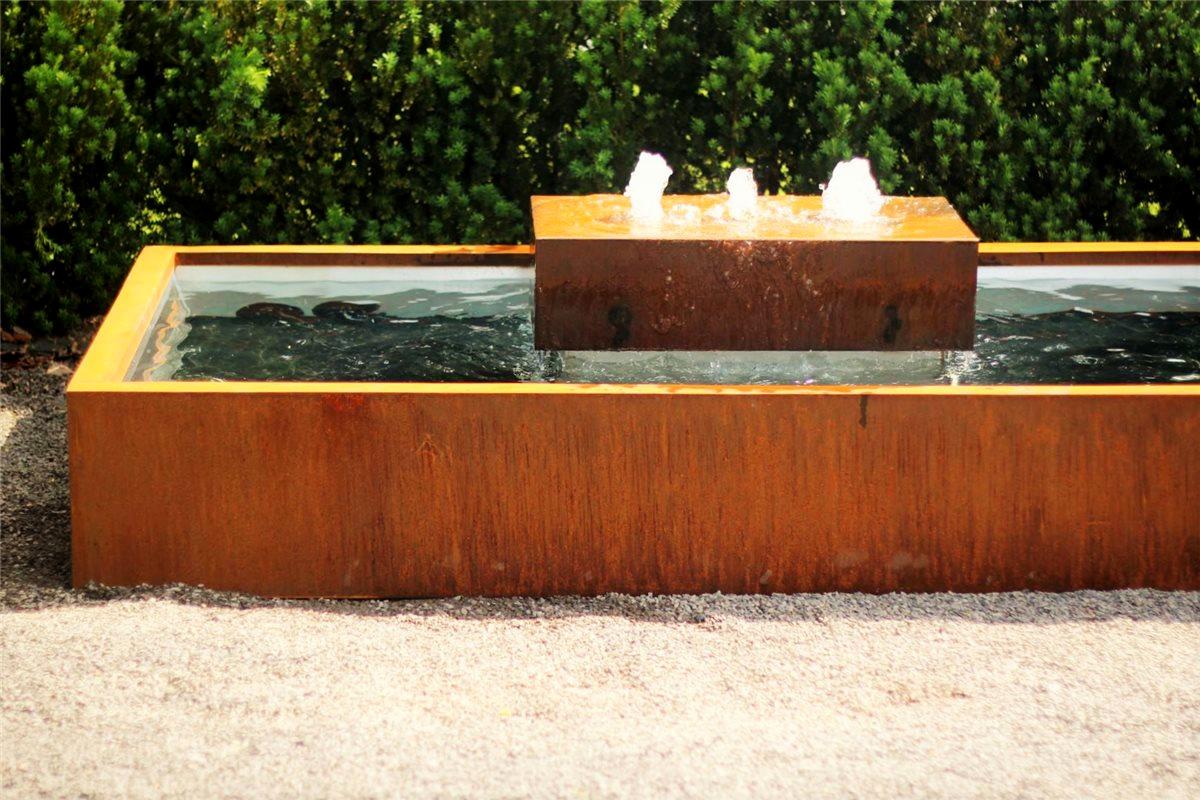 - Dieser Cortenstahlbrunnen ist freistehend und daher auch auf der Terrasse einsetzbar