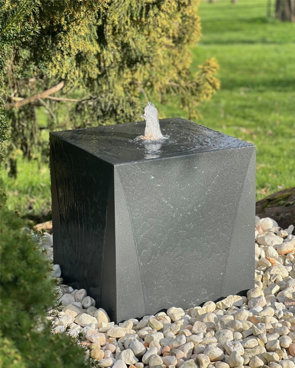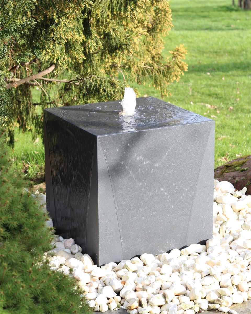 Metall Brunnen Würfel 50 cm anthrazit Gartenbrunnen Springbrunnen Komplettset