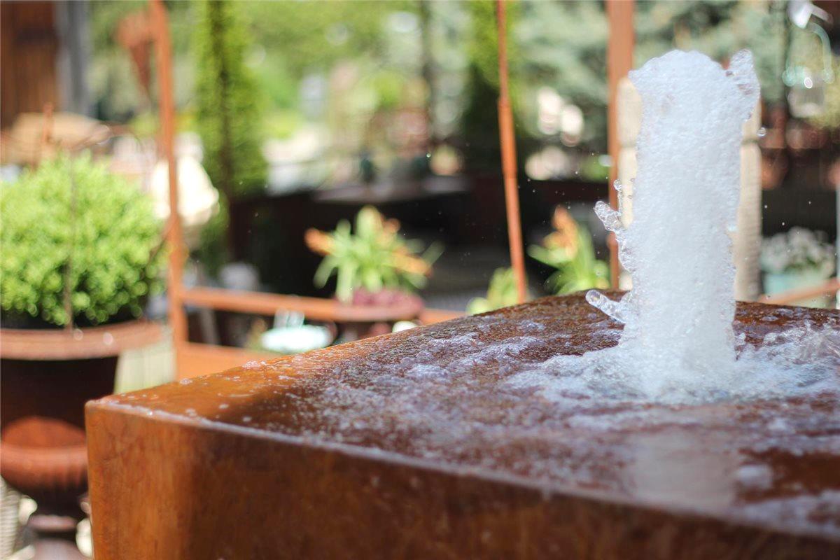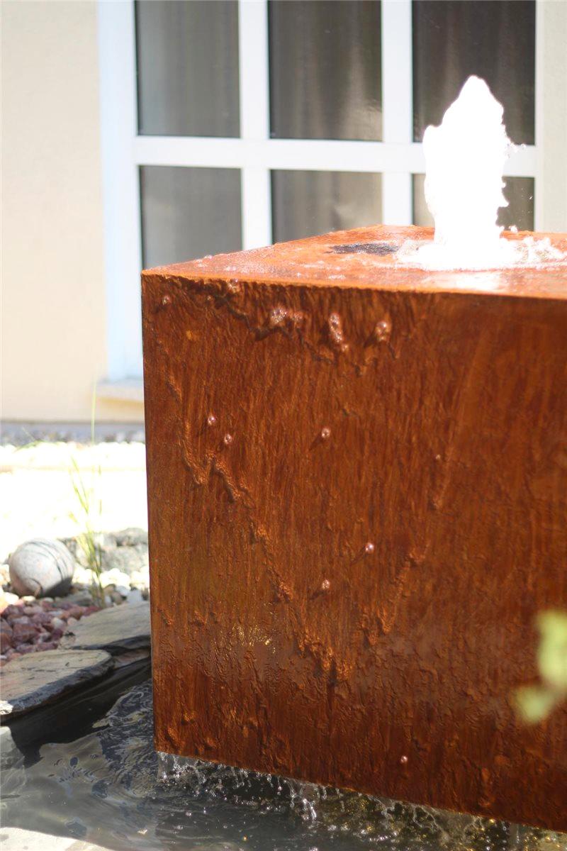 - Die für Cortenstahl charakteristische Edelrost Patina entwickelt sich in erdigen Farbtönen, Farb- und Zeichnungsunterschiede sind natürlich und machen jeden Brunnen einzigartig