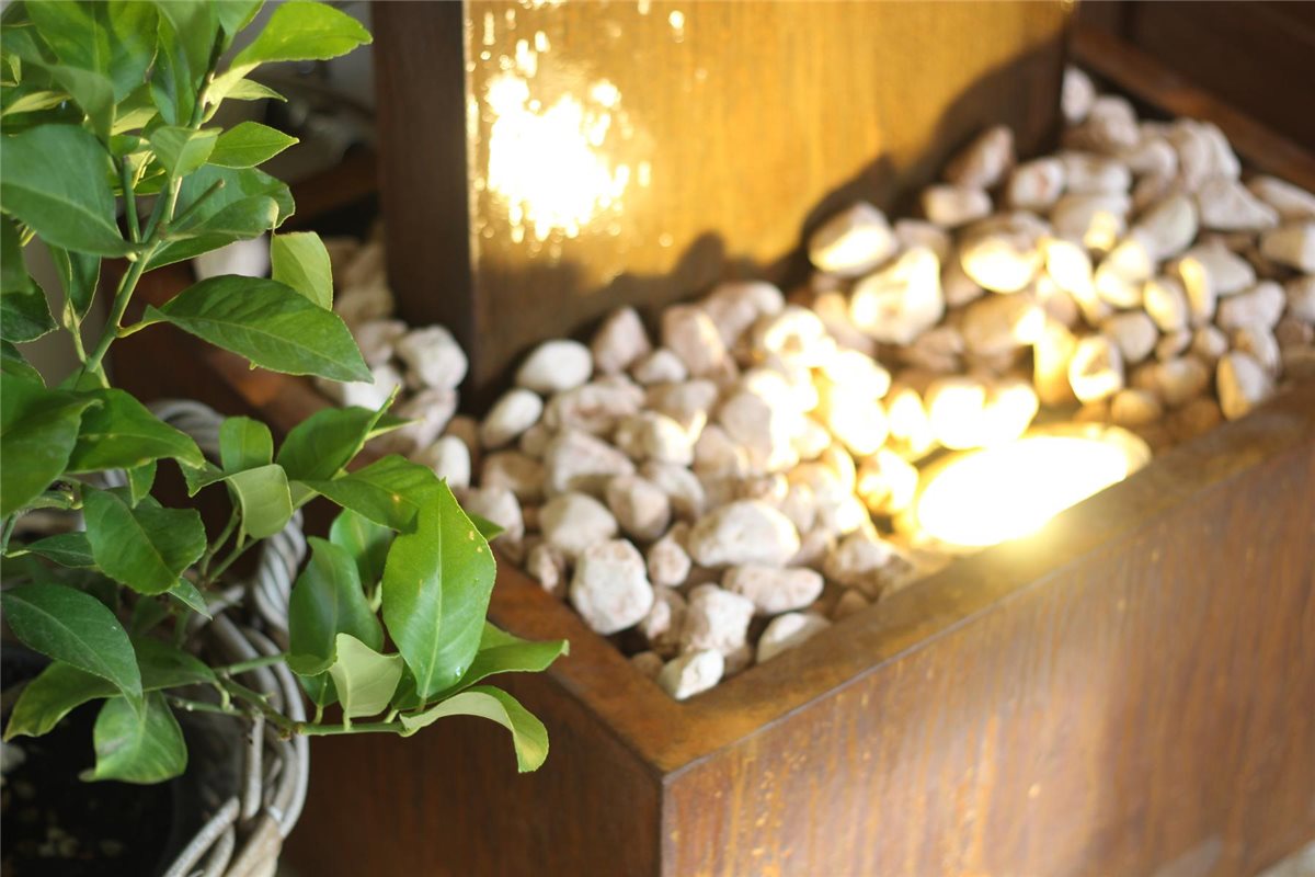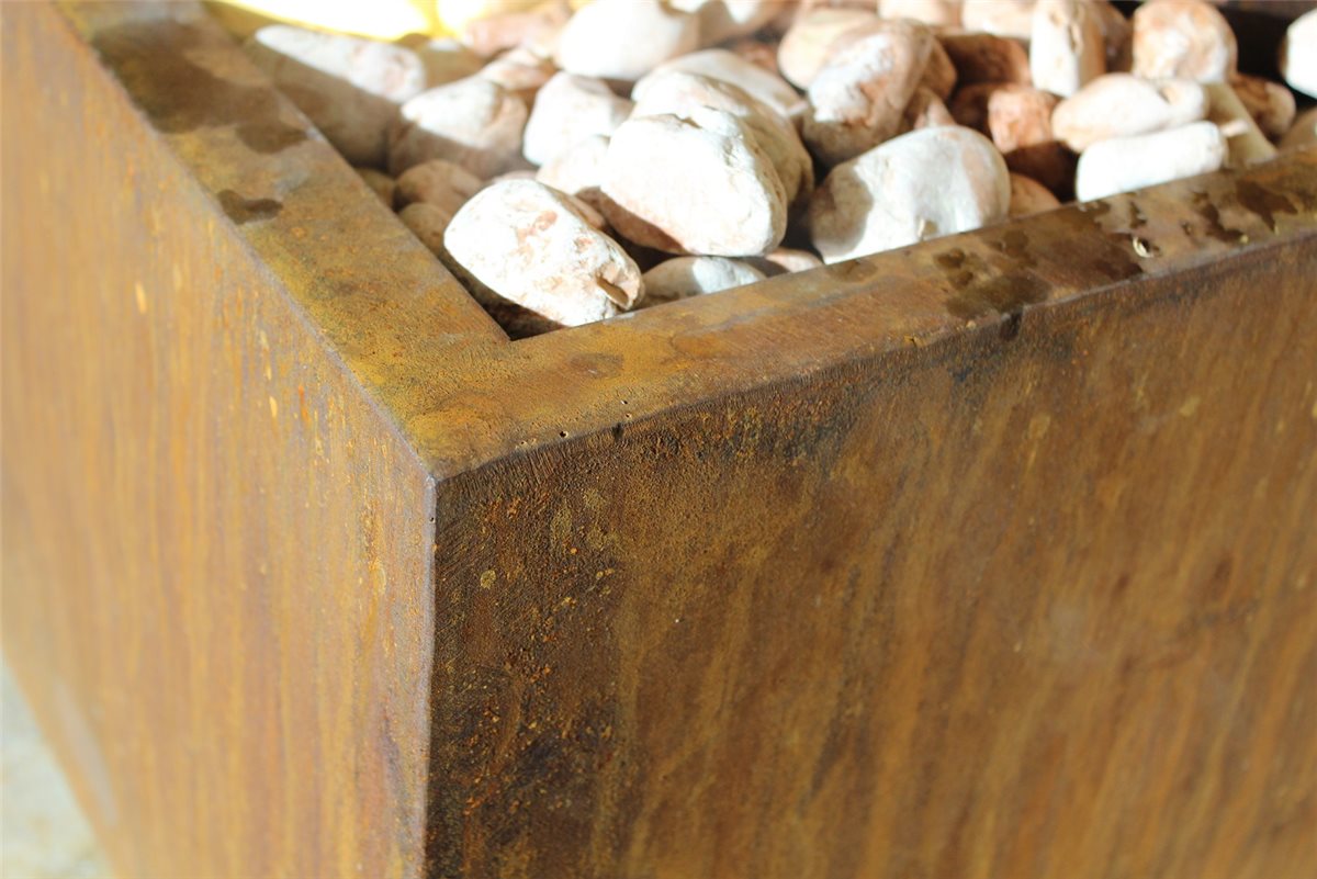 - Die für Cortenstahl charakteristische Edelrost Patina entwickelt sich in erdigen Farbtönen, Farb- und Zeichnungsunterschiede sind natürlich und machen jeden Brunnen einzigartig