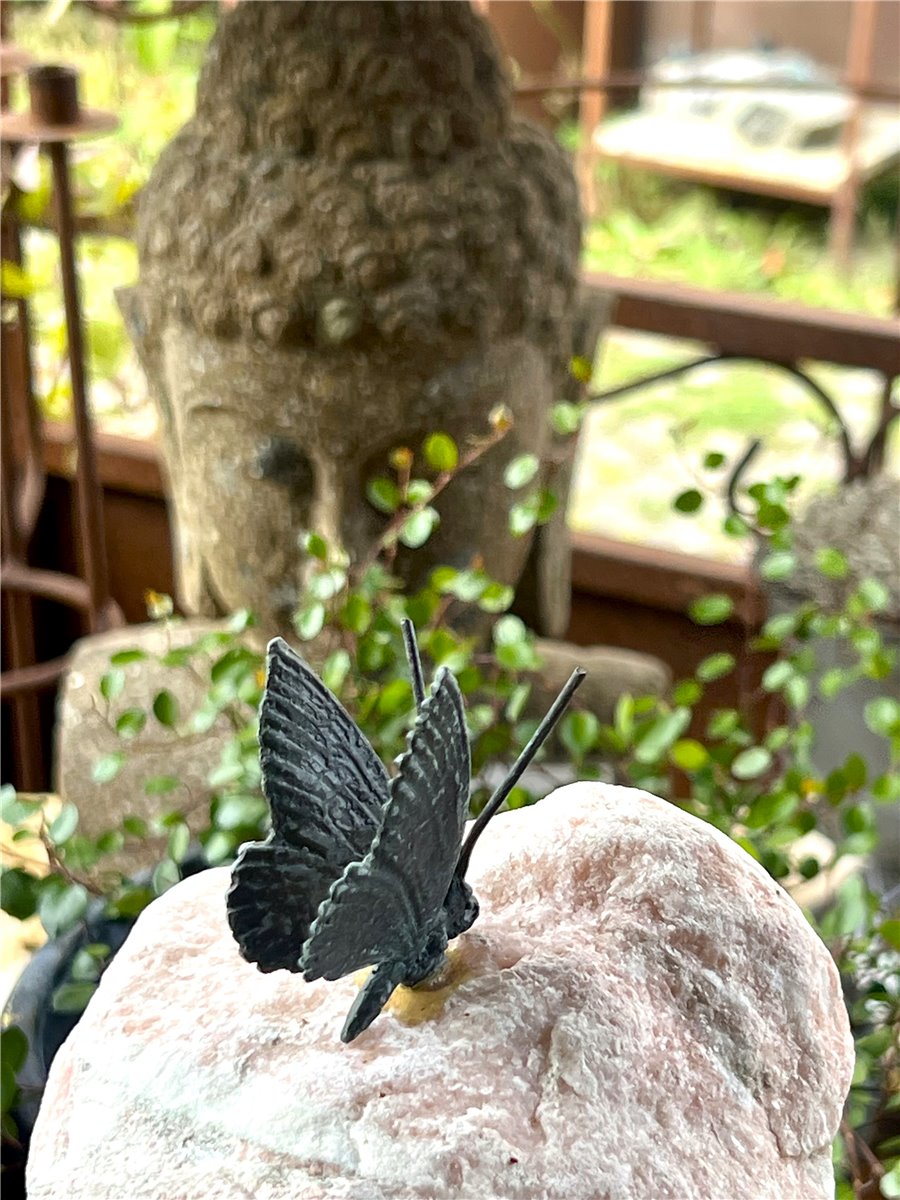 Bronzefigur Schmetterling 5cm auf Rosario Findling Rottenecker Bronze Skulptur