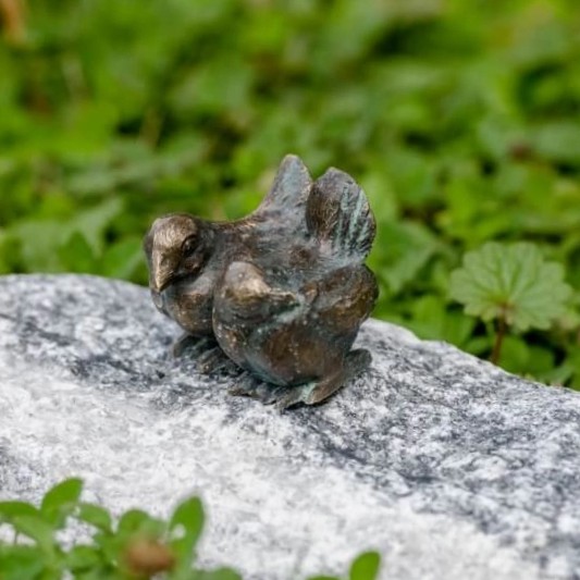 Bronzefigur Vogelpaar sitzend Miniatur Bronze Skulptur Rottenecker