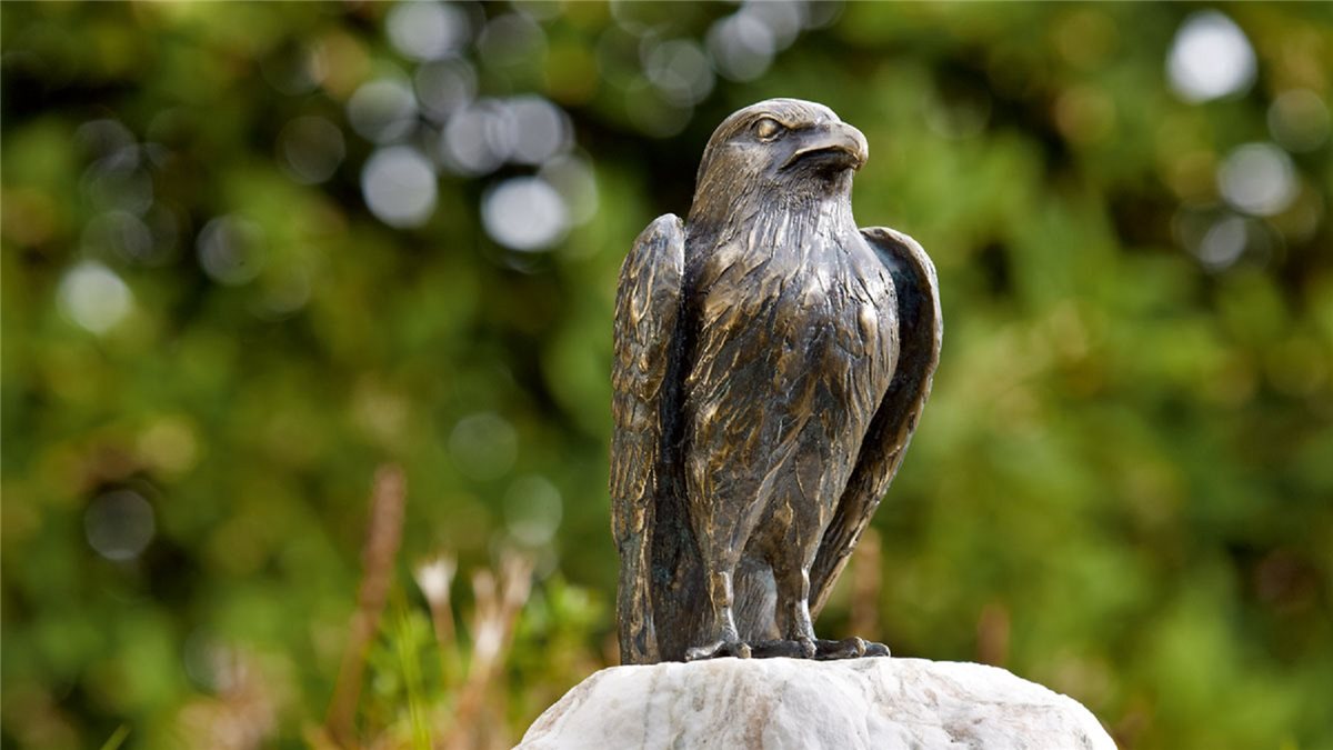 Gartenfigur Turmfalke auf Naturstein Säule 80cm Bronze Skulptur Rottenecker