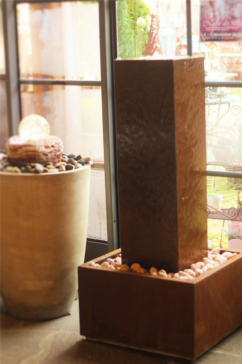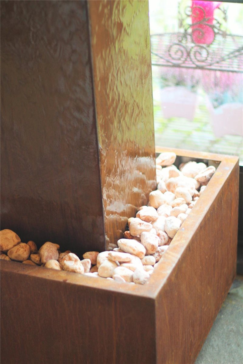 - Cortenstahl bildet auf der Oberfläche durch Bewitterung unter der eigentlichen Rostschicht eine dichte Sperrschicht, welche den Brunnen vor weiterer Korrosion schützt: Die für Cortenstahl charakteristische Edelrost Patina entwickelt sich in erdigen Farbtönen, Farb- und Zeichnungsunterschiede sind natürlich und machen jeden Brunnen einzigartig