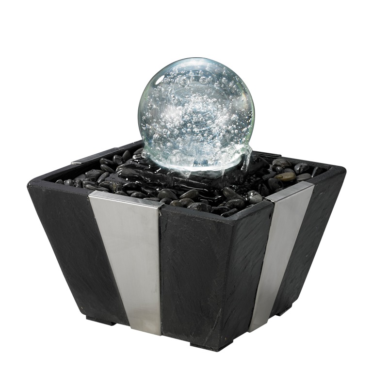 AUSSTELLUNGSSTÜCK - NUR ABHOLUNG! Zimmerbrunnen Neptune 22 Kugelbrunnen Edelstahl Schiefer inkl. Beleuchtung