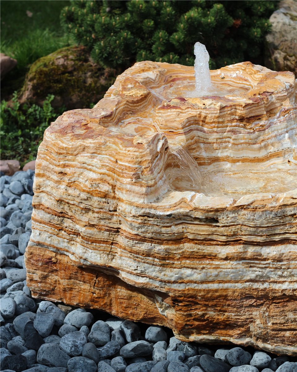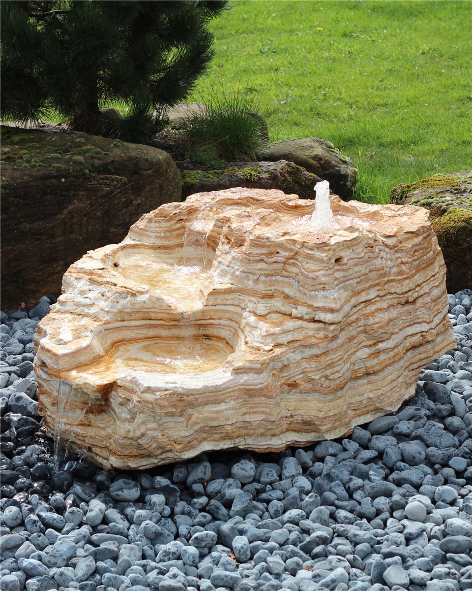 - Mit diesem Natursteinbrunnen Komplettset erhalten Sie einen einzigartigen selektierten Sprudelstein inkl. Einbaubecken, Abdeckplatte, Pumpensystem und Anschlussteile in hochwertiger Qualität