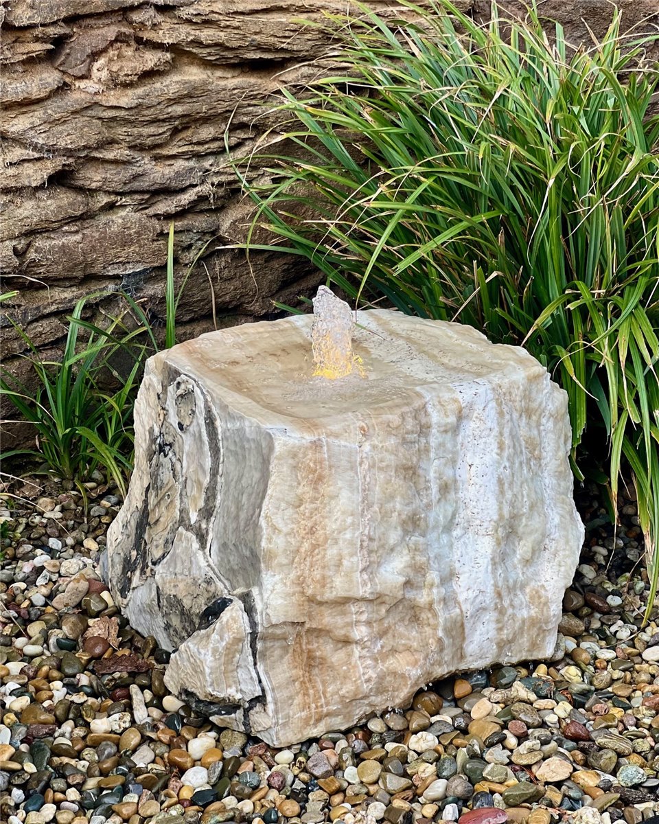 - Mit diesem Natursteinbrunnen Set erhalten Sie einen einzigartigen Sprudelstein mit ausgearbeiteter flacher Quellschale inkl. Einbaubecken, Abdeckplatte, Pumpensystem und Anschlussteile in hochwertiger Qualität
