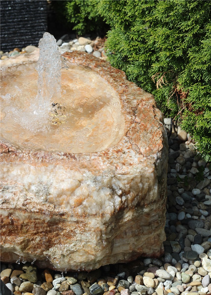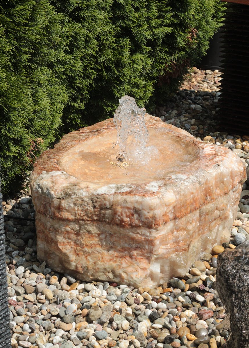 Quellstein Onyx Marmor mit Quellschale L72cm Naturstein Gartenbrunnen Springbrunnen Komplettset