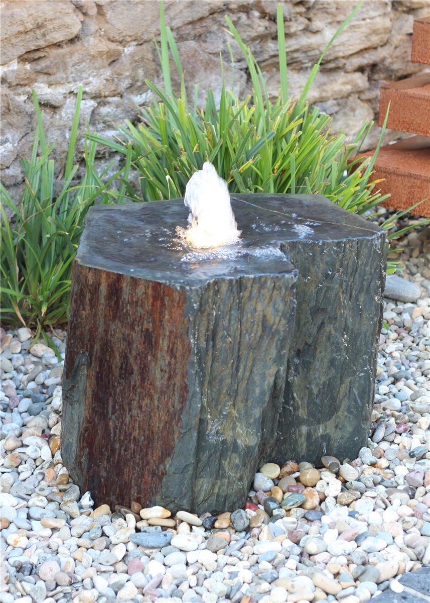 VERKAUFT! Quellstein Schiefer 45cm mit Quellschale Gartenbrunnen Springbrunnen Komplettset