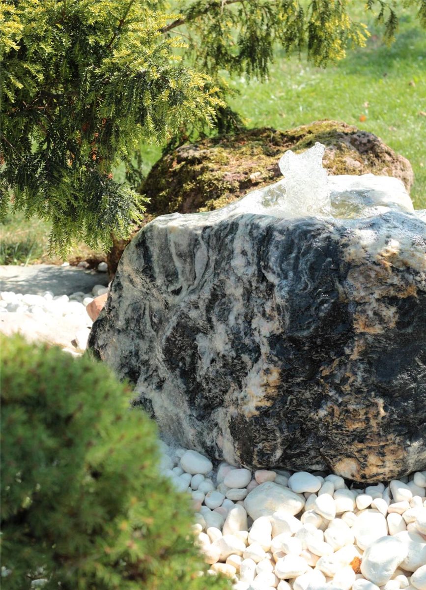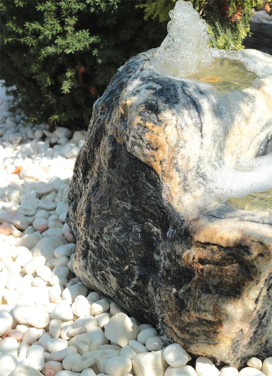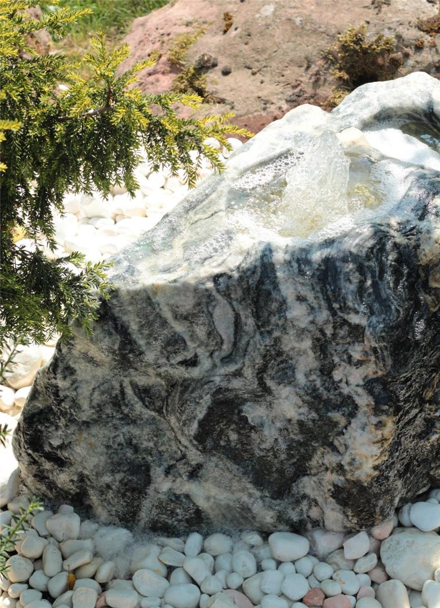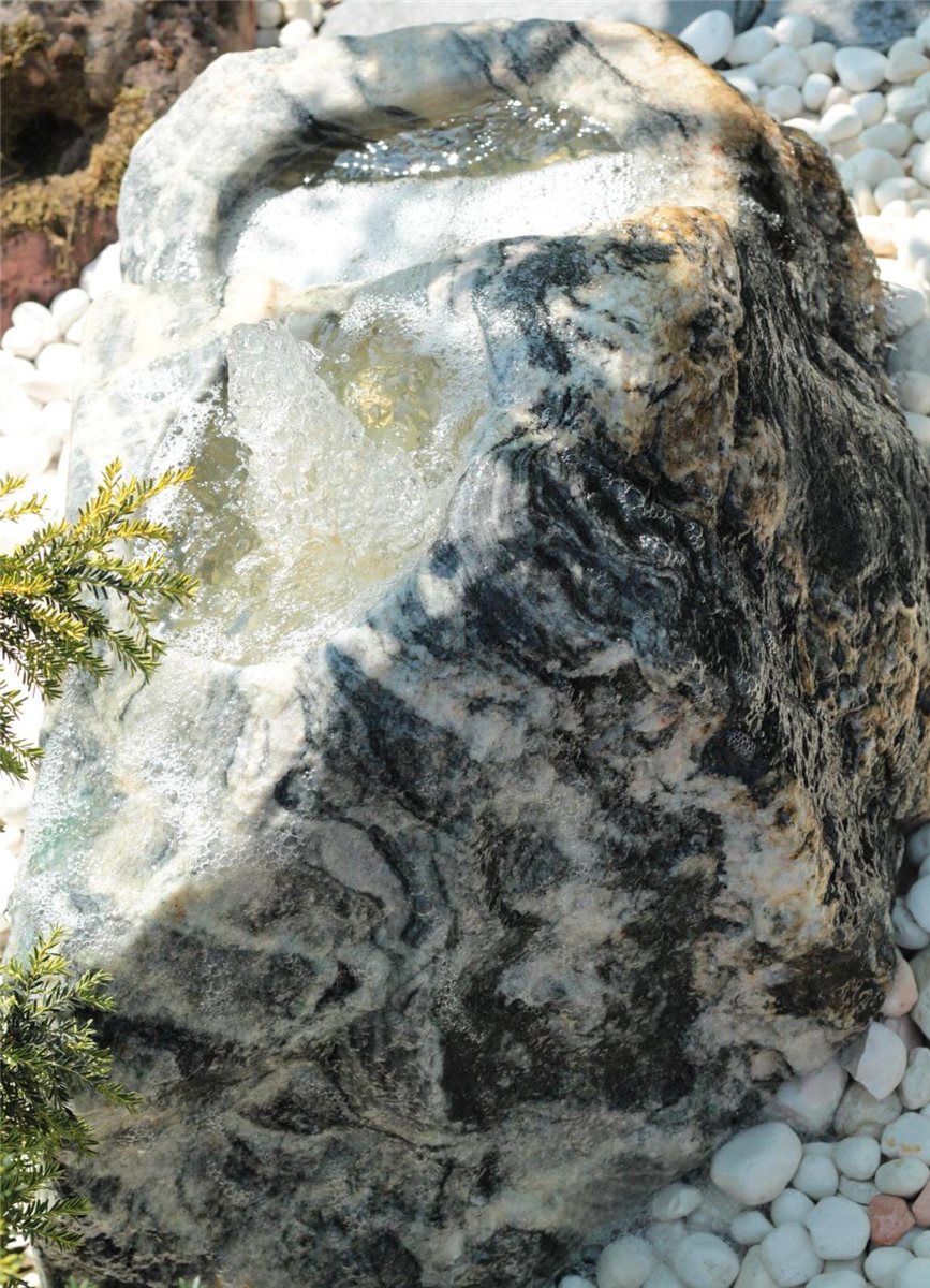 - Die einzigartige Marmorierung und Farbgebung machen den Quellstein zu einem besondes außergewöhnlich schönen Einzelstück