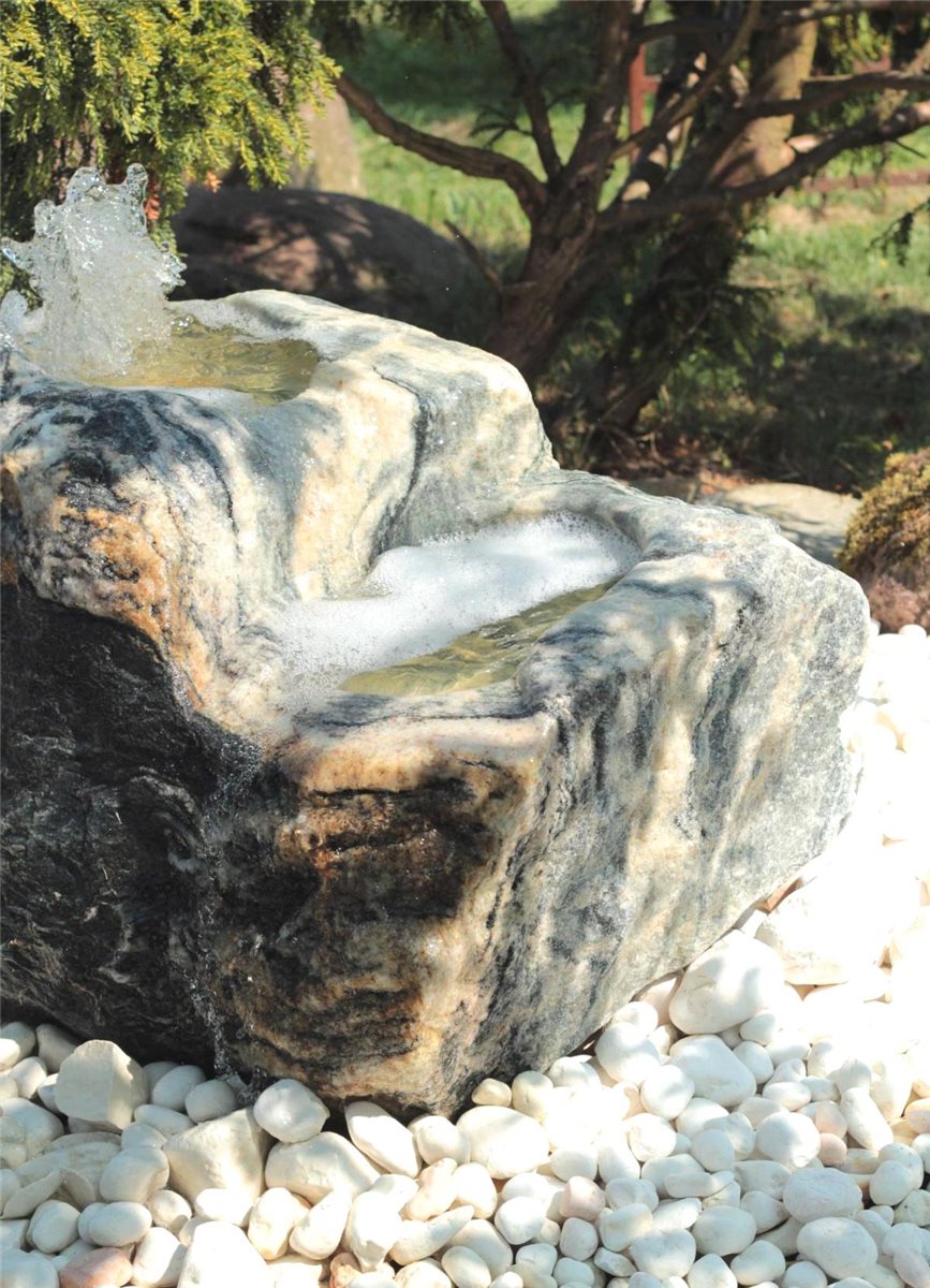 - Mit diesem Set erhalten Sie einen schönen Sprudelstein inkl. Einbaubecken, Abdeckplatte, Pumpensystem und Anschlussteile in hochwertiger Qualität