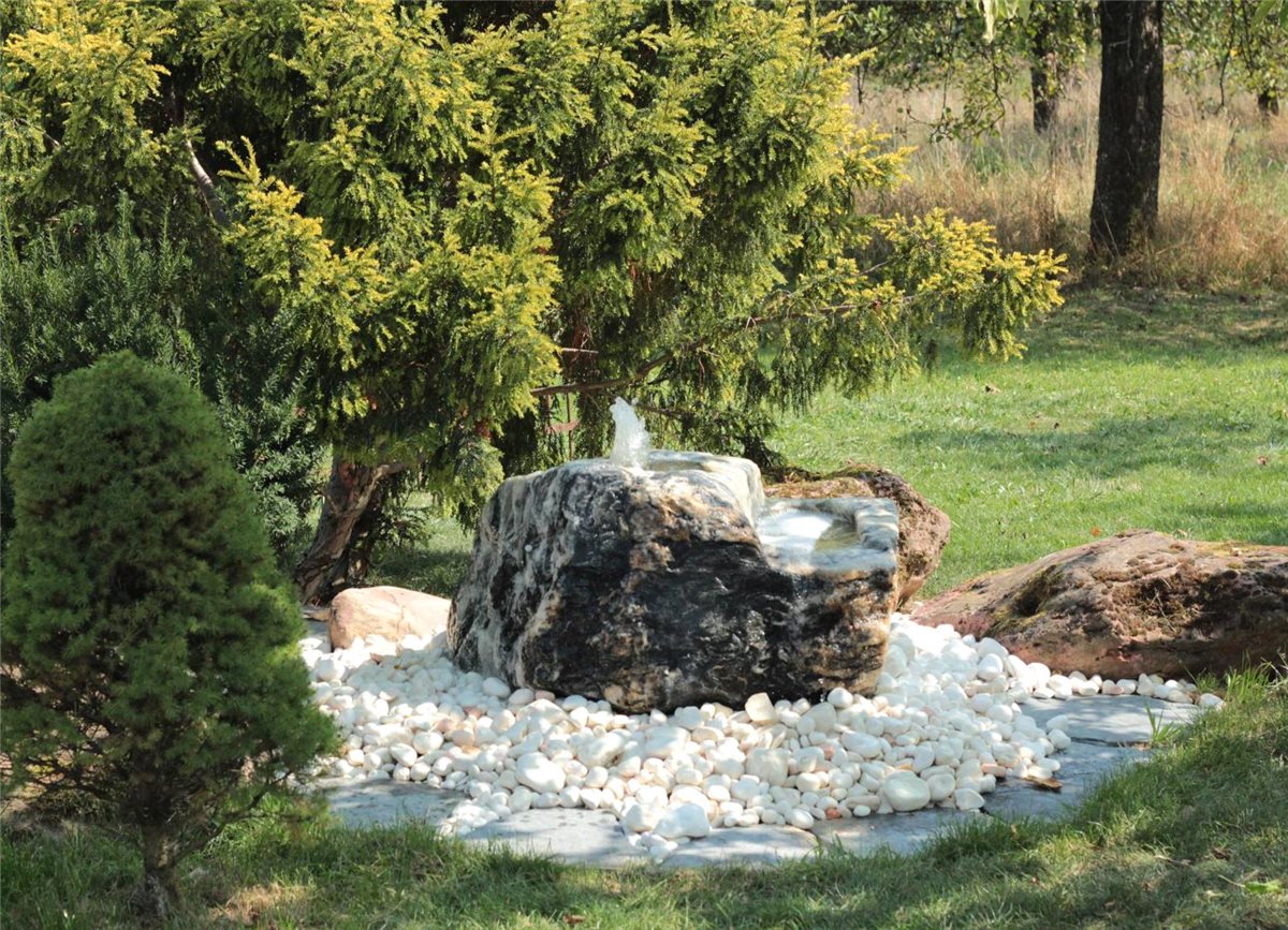 - Naturstein Bachlauf Quellstein mit Bohrung:
