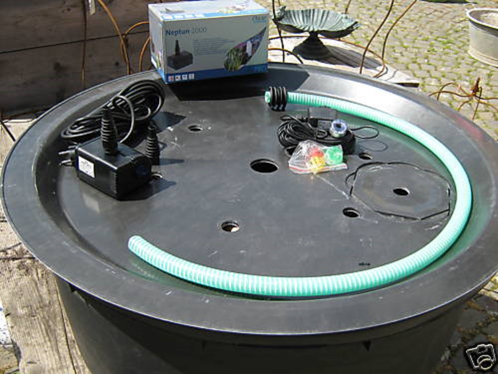 PE Becken mit GFK Deckel Ø88x35 | Pumpe Oase Aquarius Universal 2000 | LED