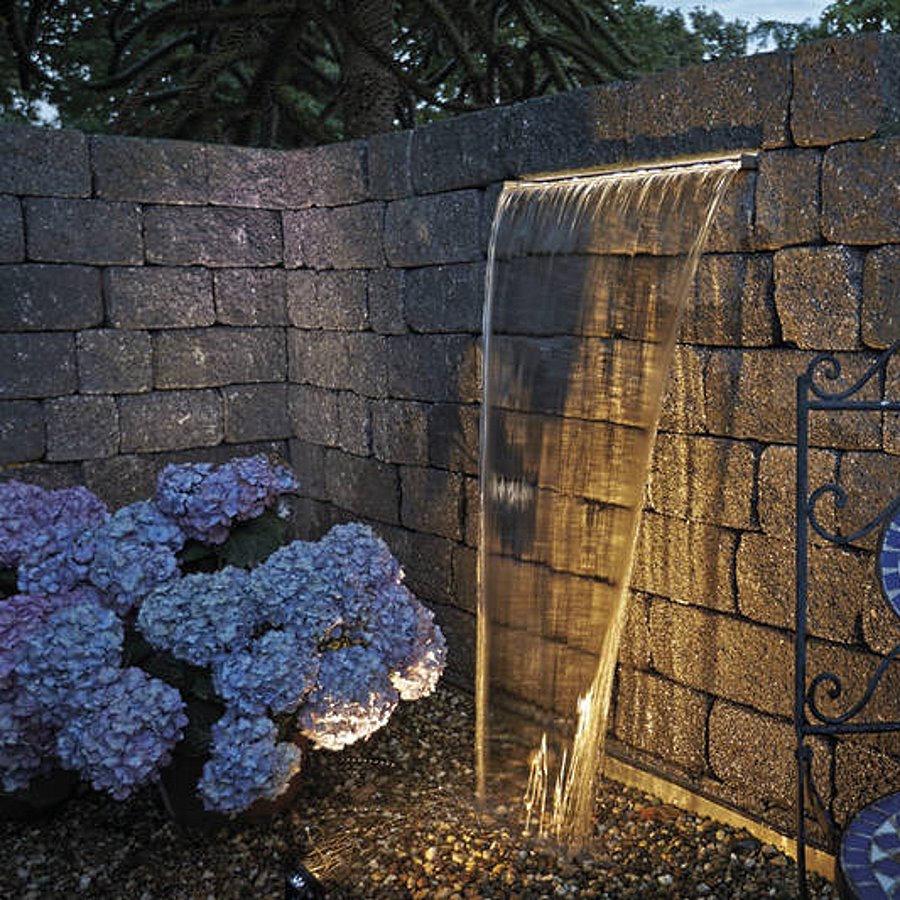 Wasserspiele im Garten sind ein echtes Highlight, das Element Wasser sollte daher in der modernen Gartengestaltung nicht fehlen. Bauen Sie selbst Ihren eigenen Wasserfall: Mit diesem Set haben wir einen Wasserfall-Bausatz mit allen technischen Komponenten zusammengestellt, geeignet speziell zur Installation an einer Wand oder Mauer. Für ein elegantes, gleichmäßiges Wasserbild empfehlen wir den Einbau bis max. 1 m Höhe. Die LED-Leiste im Wasserfall sorgt bei Dämmerung und in der Nacht für ein stimmungsvolles Lichtambiente. Der Wasserschwall verschwindet in das halbrunde Wasserreservoire, als perfekte Ergänzung dient die geräuschdämmende Spritzschutzmatte mit Filterfunktion. Zum Abschluss wird das Reservoire mit schönen Ziersteinen belegt (diese sollten vorher gewaschen werden). Der Vorteil gegenüber einer offenen Wasserfläche liegt klar auf der Hand: Der Wasserfall ist besonders pflegeleicht und wirkt optisch "clean". Als Gestaltungsbeispiele dienen die Artikelbilder. Mauer- und Ziersteine sind nicht im Lieferumfang enthalten! Handwerkliche Vorkenntnisse sollten vorhanden sein, sollten dennoch Fragen auftauchen, steht Ihnen unser technischer Support telefonisch mit Rat und Tat zur Seite!